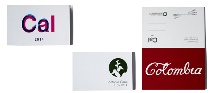 Hoy tenemos esta grata posibilidad de presentar el libro de postales del Maestro Caro, que incluye 16 imágenes de sus obras: SAL 1971, Un tigre 1973, Defienda su talento de 1974, Colombia 1975, Colombia 1976, Bandera Colombia 1977, Todo esta muy Caro 1978, Homenaje a Manuel Quintín Lame 1978, Proyecto 500 de 1990 Estampilla de 1993, Achiote 2001, Malparidos 2005, Dosis Personal 2006, Desgraciadas 2007, La Gran Colombia 2007 y Minería del 2012. Calco, la Fundación Humana Integral agradecemos este generoso obsequio que el maestro hace. De forma personal quiero comentarle que el libro de postales es para mi un gran satisfacción , pues la primera vez que vi su obra, fue en mi adolescencia tenia 13, o 14 años , yo no sabia nada de arte, y vi una calcomanía pegada en un vidrio de un bus en Bogotá: era la palabra Colombia escrita con las letras de Cocacola esta imagen me capturo poderosamente, años después me enteraría que es la obra de un artista, que había logrado llegar hasta mi con esa calcomanía, posiblemente Antonio no sabia de su existencia, pero ese es el alcance de la travesía de las obras de Antonio Caro.