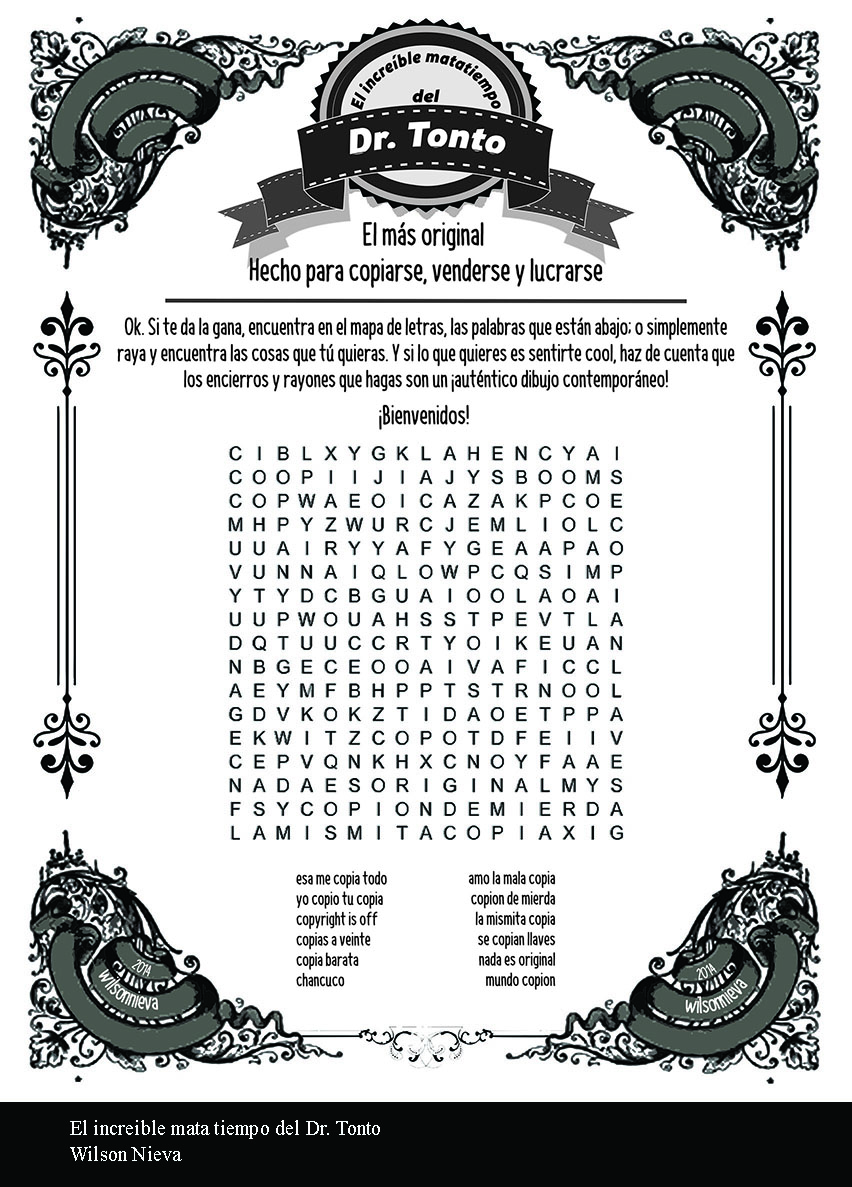 Los artistas a lo largo de la historia han retomado imágenes de otros artistas y épocas, desde Durero, Cranac, Brueghel, van Gogh , Matisse , todos hicieron copias, la lista es larga. En la actualidad y con mayor frecuencia, esas imágenes y objetos son producidos originalmente con otro fin: publicidad, textos científicos, frases, sellos, fotografías, el retrato de un personaje importante o de un desconocido, un trozo de cartel, objetos encontrados, etc. Incluyendo las imágenes de sopa Campbell de Andy Warhol, la Bandera de Colombia de Antonio Caro con las letras de coca-cola en la parte inferior. Una de las características de aquello que llamamos: “contemporáneo” es que en ocasiones no se trata de una innovación en la producción de la imagen, sino una mirada sobre lo real: Esa mirada del artista logra transformar aquellos fragmentos que ha tomado de su cotidianidad, sin anular o cambiar por completo el contenido conceptual con que fueron creados. Lo que hace es retornarlos al contexto socio-cultural aportando una mirada crítica de lo que nos resulta cotidiano, y por ello insignificante o intrascendente. La exposición No Copyright aboga por una postura poco tradicional del concepto de “copia”: pretende agudizar la percepción de lo cotidiano, capturado por el ojo del artista, resignificando el valor de una imagen y su copia en los tiempos digitales del “Copy&Paste”, la impresora casera y la fotocopia; En donde una “pequeña o breve” acción sobre dichos fragmentos, construye una imagen cargada de un concepto que devela lo trascendente de lo intrascendente, sin la obligación de producir una imagen grandilocuente. Si bien en esta exposición cada artista conserva la autoría de la obra, los asistentes podrán llevarse una “copia-original”, la cual pueden volver a fotocopiar, rayar, dibujar, doblar, enmarcar. Incluso los archivos están para su libre impresión en la página web de CALCO: http://www.funhi.org/calco%20web/2014/expo%20colectiva.html De manera tal que dichos archivos están regidos por las 4 normas planteadas por Stalman: 1. Libertad de usar el archivo sin restricciones. 2. Libertad de estudiarlo y adaptarlo a las necesidades de cada uno. 3. Libertad de redistribución. 4. Libertad para mejorarlo y publicar las mejoras. CALCO da inicio a sus actividades para este 2014, con la muestra no copyright que busca evidenciar desde la mirada de los artistas, la compleja trama de relaciones sobrepuestas, que construye cada individuo al experimentar y apropiarse de una imagen.