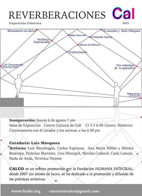 Esta propuesta parte de la concepción de que el cuerpo tiene la capacidad de trascender a partir de sus reverberaciones. A través de estos ejercicios artísticos el cuerpo es percibido como una adición que modifica el espacio original y su permanencia en el tiempo se desplaza a la dimensión de lo sensible. Por medio de una selección de videos, registros gráficos de vivencias, y una propuesta de lugar, se abordan tanto la presencia como ausencia del cuerpo, su relación con paisajes y espacios arquitectónicos, para resonar el significado de los lugares que ocupan.